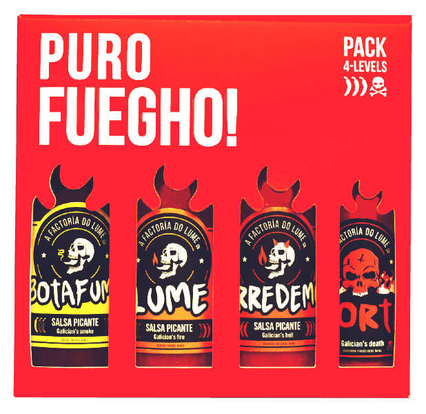 Le coffret des sauces piquantes galiciennes ! Tout est fait maison chez eux et leurs sauces pimentées fermentées sont excellentes. Attention la dernière sauce du pack est méchante.