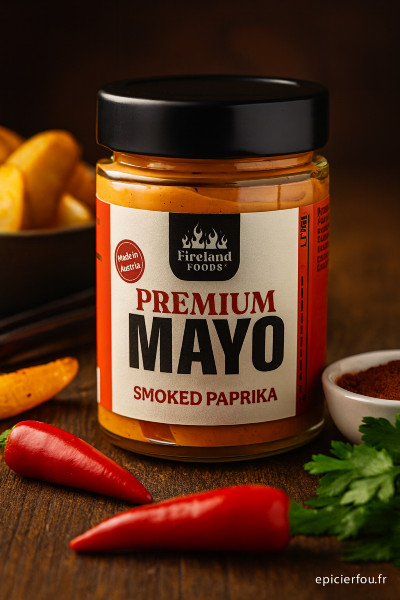 Chaleur 0/10 - Pas de piquant mais une mayonnaise ultra onctueuse avec la saveur profonde du paprika fumé ! Une tuerie pour les sandwichs, burgers, fondues viandes ou poissons, grillades, ect.